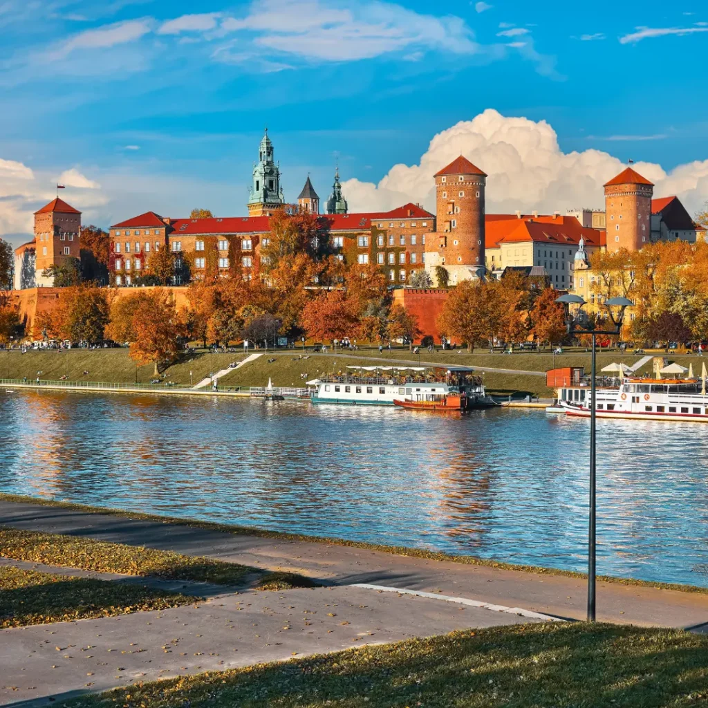 Wawel Castle: One of Poland’s most important cultural sites, overlooking the Vistula River.